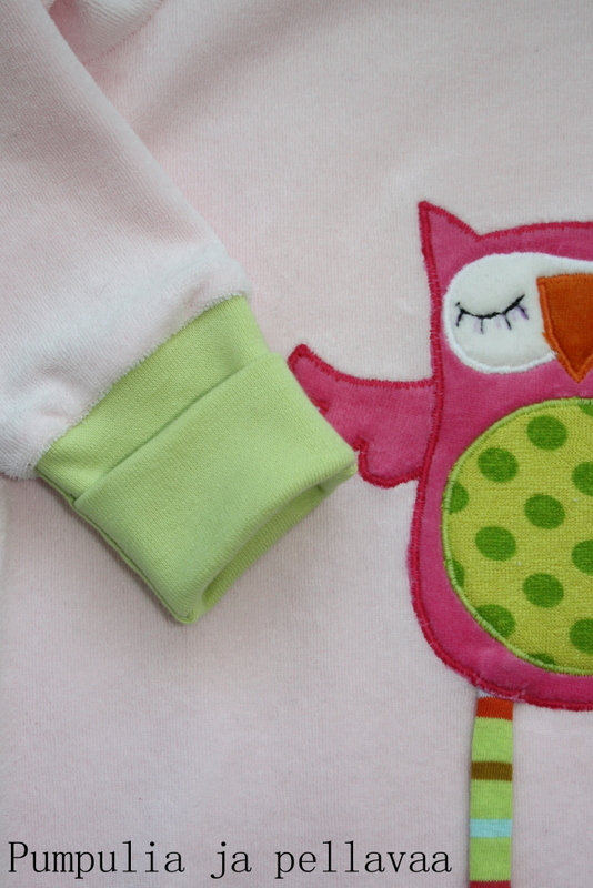 Sain viikonloppuna sähköpostiini tilauksen, jossa toivottiin unipussia tytölle. Väri joko neutraali tai tyttömäinen, toteutus vapaa. Yleensä tilaajilla on tarkka toive, joten tämä oli ihan mukavaa vaihtelua. Koskaan ei ole tilaus tullut valmiiksi näin nopeasti!
